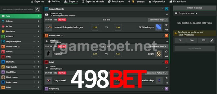 O 498bet oferece uma grande seleção de opções de apostas em e-sports com probabilidades competitivas